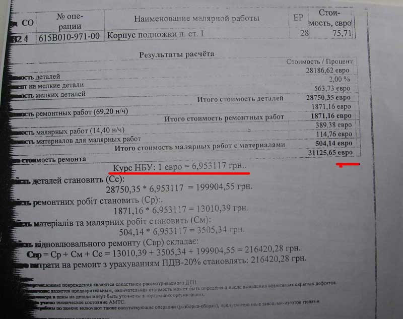 В полисе в гривнах. А в калькуляции стоимости восстановительных работ в евро.