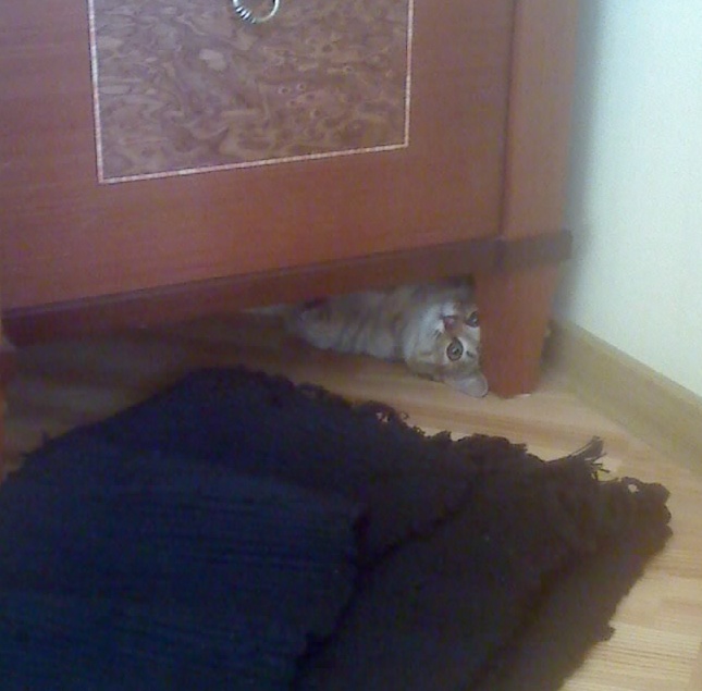 Обеденный стол... Ну, у нас уговор не лезть руками мне в тарелку, пока я сам не доем, однако этот уговор постоянно проверяется на действенность и периодически вижу полосатую руку, которая не против выхватить кусок буквально изо рта. Бесполезность борьбы в этом ключе кроется в понимании кошачей психологии - необходимо всякий раз, но не единоразово, давать понимать премущество (очередность) в доступе к пище, кроме даваемой в детскую тарелку.