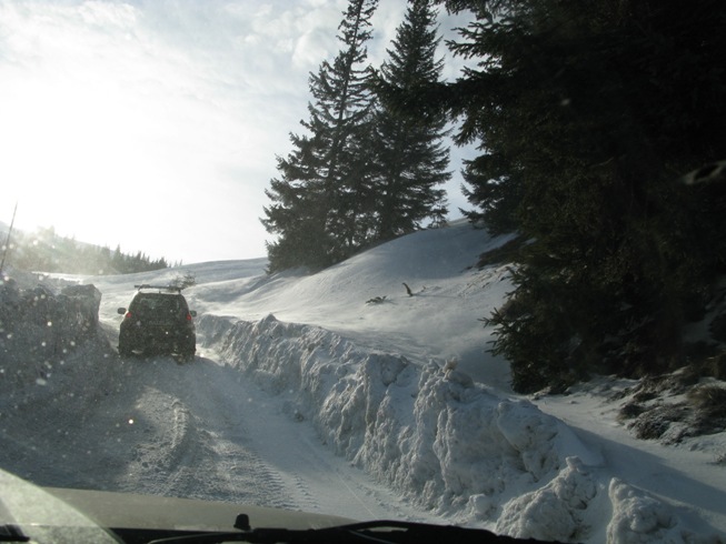 1. по дороге туда приехал в Ясень, вместо Ясеня -лишние полтораста км пришлось сделать по разгромленной дороге. 2. приехав под гору спихнул друзей в уазик, водиле дал рацию и велел рассказывать где и как он едет. я за ним. В результате, по плохой дороге (почти без снега, но со льдом) въехал наверх без единой пробуксовки и не одевая цепей (я их таки нашёл на себя ). Ничего сложного в дороге не увидел, а может потому, что все потенциальные сложности мне показывал водитель уазика и я их благополучно проезжал. 3. поднявшись наверх обнаружился снег, много снега. запарковавшись и разгрузившись решил таки одеть цепи, и правильно. всю неделю катался с грузом лыж, ботинок и семьи с друзьями от горы к отелю и к другой горе. 4. вчера днём спустился. дорога на сей раз была снежная. спускался с цепями и без единого намёка на трудности. цепи снял уже на ровном. по снегу ехать морально было значительно проще.