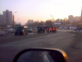 Наверное провалился люк под землю. Ехал час назад со стороны Ленинградской пл. по ХШ в сторону Харьковского, после кладбища направо, и сразу же как только слева начинается ул. Ревуцкого афигенная ЯМА диаметром больше раза в полтора чем сам люк!!!, я там всунул из ближайших кустов деревяху, всунул еще туда картонный ящик, но наверное это ненадолго, будьте аккуратны.