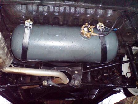 7. но потребность вместительности и без того небольшого багажника таки победила объем баллона. В результате установлен маленький на 30л. баллон на место глушителя