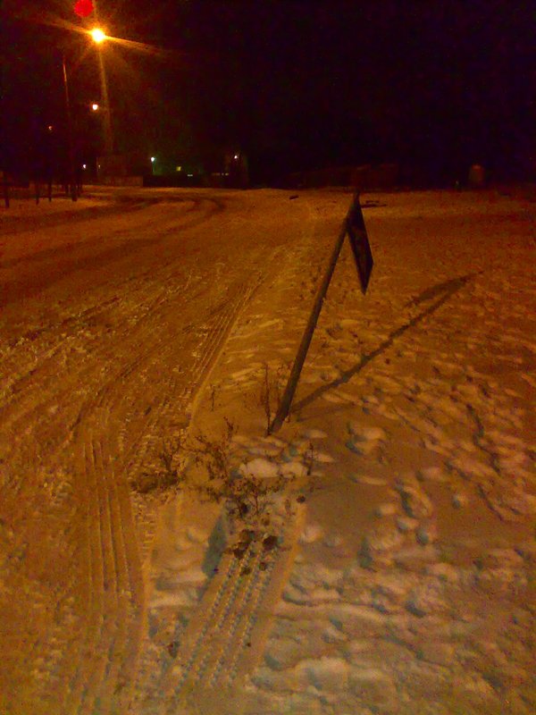 Разворачивался, не увидел. На Боженко пару лет назад, помню, с неделю так же знак причудливо торчал, причём там знаком уе стукнуло ни в чём не повинную постороннюю машину. Вроде так виноватых и не нашли.