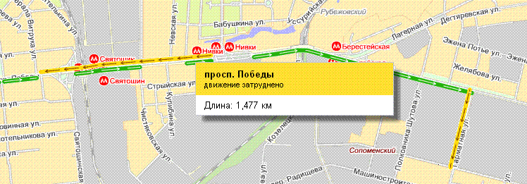 Сабж на 14:30. Видимо, что-то случилось за м.Святошин. Пробка практически стоит. Поворачивал на Щербакова (ехал по направлению в центр), конца пробки в районе Берестейской видно не было. Объезжайте.