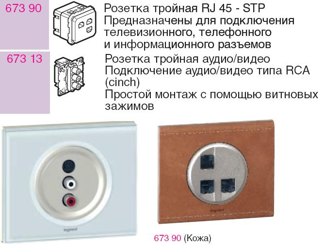 Эти картинки практически соответствуют тому, что мне надо. Однако - выглядят великоватыми Особенно смущают пустые полосы сверху над RJшками и BNCшками. Хотя само по себе наличие BNC - это здорово. Я полазил по каталогу Легранда - нашел вот такое (скомбинировал в картинку) В одном посту либо 3 витухи, либо 3 RCA (на картинке 2 RCA+S-Video, в каталоге нет красивой картинких трёх RCA). Так как коаксиал идет от камер - то BNC предпочтительнее, но с точки зрения компактности данный пример более приятен. Мне надо вывести 6 коаксиалов и 8-10 витых пар