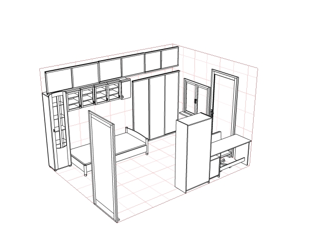 1. Глубина шкафов на стене с кроватью - 50-60 см 2. между кроватью и окном шкаф, 3 створки сдвижные, наполнение дверей ДСП, в шкафу 5 шухлядок на 1/3 ширины шкафа 3. ДСП 18 мм, ламинированное, обычное. кромка ПХВ 0.5 и 2 мм на внешних торцах 4. вверху на стене с кроватью полочки, дверки ДСП распашные 5. над кроватью тоже полочки, дверки ДСП распашные 6. Узкий шкаф около кровати, двери ДСП без стекол, 2-3 шухлядки 7. Компьютерный стол 1.5 м длина, и еще должен быть верх с полками,отсеками, ну и все что положено для компа. Тумба 5 шухлядок 8. Кровать примерно 2 метра длинна, 90 см ширина. Между кроватью и стенкой можно ДСП всунуть