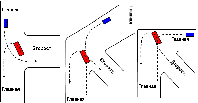 А если рассмотреть сначала, что главная дорога не меняет направления, то получим следующее...