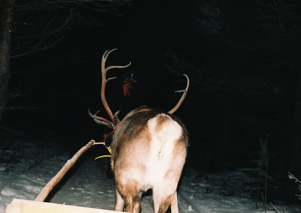 А вот сафари на оленьих упряжках — это уже совсем другое развлечение. Сначала нас учили ловить оленя с помощью самодельного лассо)) и только потом усадили в сани с сеном (для мягкости), покрытые шкурами (для тепла), хорошенько укутали оленьими одеялами (для пущего тепла) — и в путь. Неспешные олени (которые в самый неожиданный момент, дождавшись, когда мы расслабимся, прокатили с ветерком) везли нас целый час по вечернему лесу среди искрящихся в свете фонариков елей, хрустальных березок и огромных сугробов… Как в сказке 12 месяцев, чесслово:). Потом где-то вдали завиднелся среди деревьев костер. К месту ужина — огромному очагу с бревнами, покрытыми шкурами, мы подъехали по освещенной свечами дорожке. А дальше финские колбаски гриль, горячий чай из деревянных кружек и ароматные, испеченные прямо на костре нашими провожатыми блины с вареньем из голубики. Объеденье! Назад мы возвращались при свете звезд, которые в Заполярье светят пронзительно ярко. Кстати, под конец нам выдали права водителя оленя))). Со сроком действия 5 лет (этот факт несказанно обрадовал детей).