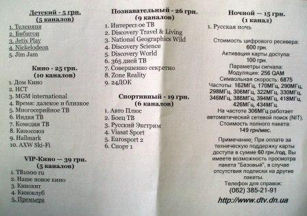 Вот рекламку увидел, стоит ли за 600 грн. + плата за пакеты, подключаться или нет. Смысл я как понимаю в том, чтобы сэкономить типа на тарелке и получать в основном русскоязычные каналы. Возможно шнуры дергать не придется. Но! 120 каналов и все.