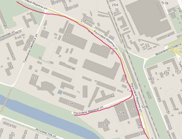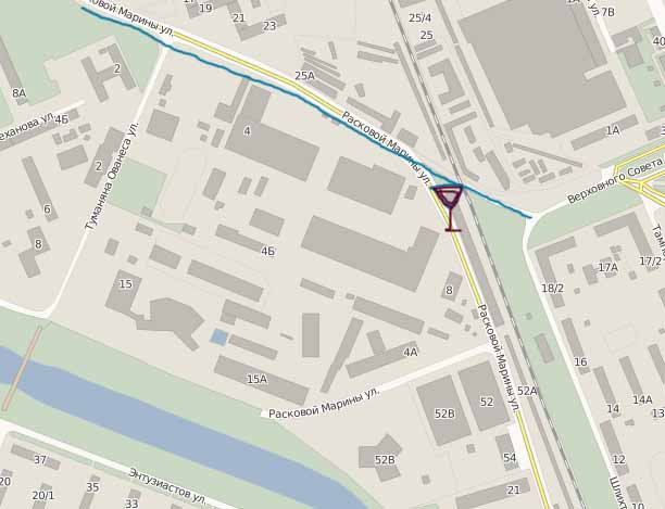 На самом деле Расковой идет так до пересечения с бульваром Верховного Совета, а на Плеханова даже знак раньше был "уступить дорогу". И 42 автобус раньше через переезд ездил.