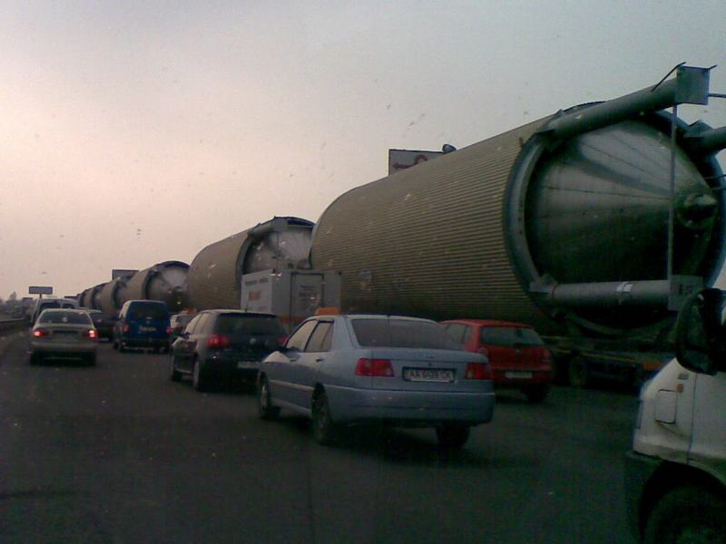 В сторону Теремков час назад стояли четыре бочки (нев"№№нного размера) пивзаводовские скорее всего, явно не проходили под проводами. Народ чесал репу и стоял. В итоге небольшое напряжение, но к вечеру если не рассосутся, то будет грустно. Занимают 2 полосы из 4-х.