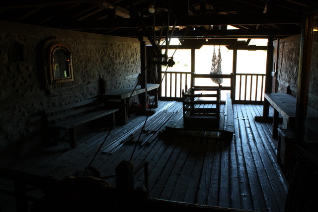 Вот так раньше поднимали монахов, в корзинах. Теперь у монахов есть канатные дороги, туристы топают по ступенькам (их очень не мало!), а в корзинах поднимают дрова и стройматериалы.