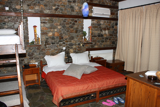 А потом мы проехали чуть дальше и нашли замечательный семейный отельчик, расположенный в красивом каменном доме. Решили остановиться здесь. Единственный минус в том, что никто из хозяев практически не говорит ни на одном языке кроме греческого.