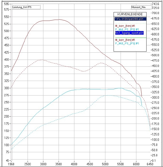 Просто 350номов с 1800 доступны, а 400 с 2800-2900. Вот график. Слева и мощность и крутящий. Пунктир сток, сплошная - чип. Красная - моент, синяя - мощность. Понятно, что стэнд не есть точным прибором)