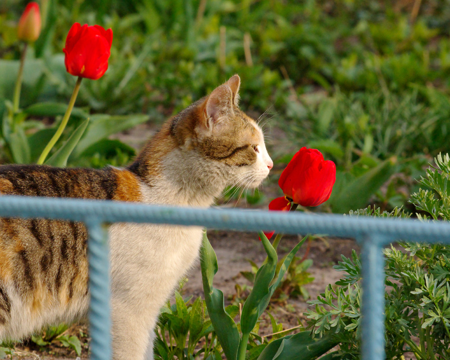 А вот кот, ему то же не чужда радость весны и запаха цветов