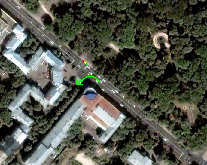 Может я плохо помню, но светофора там не было. Вид сверху. Светофор я нарисовал. Стрелку по которой уходят налево тоже. Ничего никто не нарушает, только пропустить тех кто едет навстречу (но в случае красного света- встречников тоже нету)...