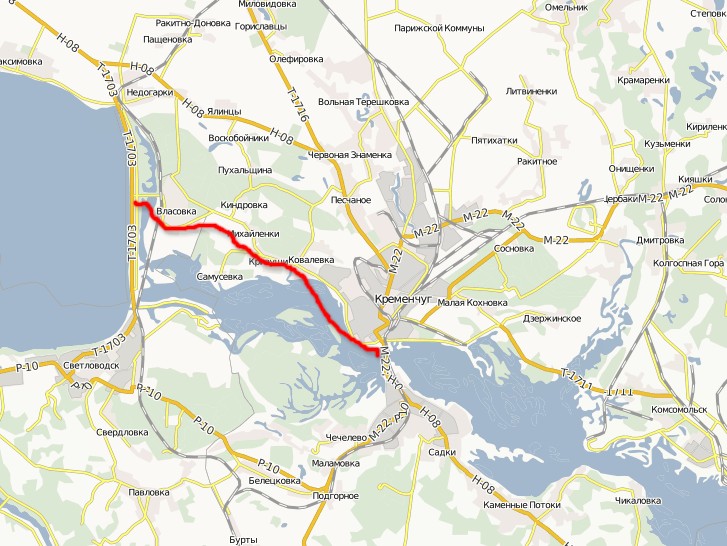 В последних числах марта ездил через Светловодск - фтопку такие объезды. Ехать дальше, а дорога та же. Назад ехал вот так (красным выделено), понравилось.
