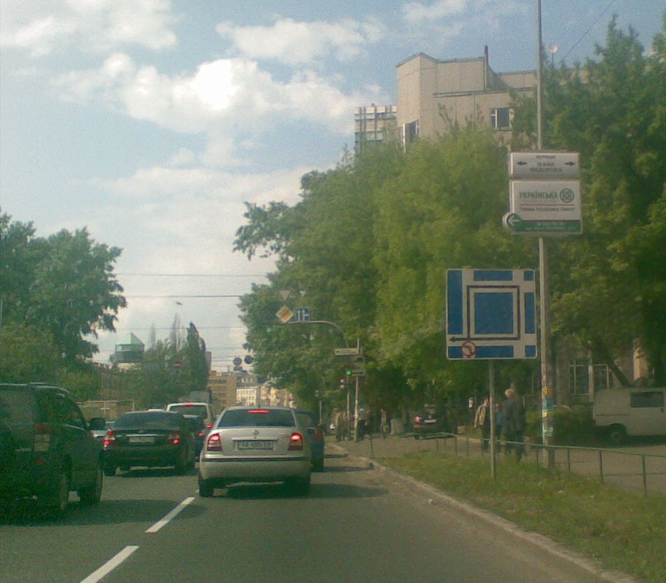 50% не видят огромного щита и знака "движение по полосам", и успешно поворачиваеют с Боженка на Протасов (со стороны Лыбедской), некоторые умудряются это делать по старинке - со второго ряда. Изредка проезжают далее. На картинке схема, как заехать на Протасов со стороны Боженка от Лыбедской