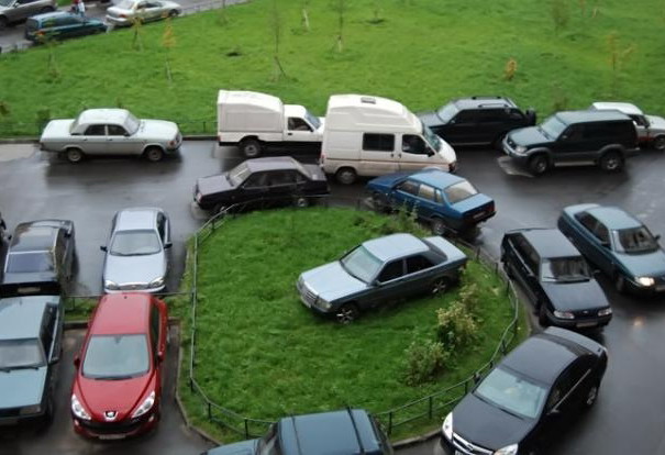 угу. эти фото были на фишках.нет парень выезд перекрыл - вызвали эвакуатор, но увозить не стали а сгрузили на клумбу. оба фото одного дня (день / вечер). кстати, хорошая идея.