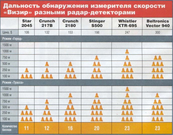 Довольно интересная статья в последнем Автоцетре. Советую почитать. Дабы не разорять итак голодающих журналистов, не буду выкладывать всю статью, вот только сводная табличка для затравки Как обладатель star 2010 за $60, могу сказать, что относительно тестируемого стара вроде похоже на правду - в городе действительно визирь он видит метров со 100 не дальше. А на трассе с полукилометра где-то.