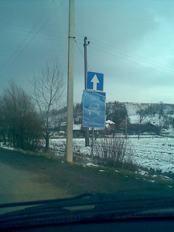 Решил таки в курилку. 02,02,2009 на свой день рождения сфотографировал меня визирь со скоростью 124 км/ч. Но был я на дороге обозначенной знаком "дорога для автомобілів". Правда на знаке была какая-то фигня типа прозрачной синей плёнки. (пикч) Вообщем 300 гривен. Говорят что знак закрыт. Возвращали мне с суда материалы на исправление всяких глупых ошибок, но я не сдавался. И вот сегодня наконец-то состоялся суд. Проходил он быстро. - Представители ГАИ есть? - нету - возражений не приходило? - нет - задовільнити повністю. Через неделю за решением бумажным иду.