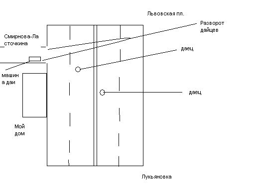 Со стороны Лукьяновки машин нет...даец стоит на осевой, смотрит в сторону Львовской..опять включает-выключает палку. ВООБЩЕ бессмысленно это делает. Т.е. просто кнопочку нажимает туда-сюда. Мне уже плохо его видно...Выскакиваю на балкон...Ух ты Ё... Дык там еще один такой же ходит по полосам...Причём ходят загзагами...Чесс слово!!! Тормозят форд...Пару сек. - водила вылазит и включает "шашки" сверху...догадываюсь что к этому придолбались, т.к. он сразу рвет с места с их разрешения...Они вообще никаких проверок доков и т.д. не делают. Просто махают палкой...вернее включают её. Тут замечаю их машину на Смирнова-Ласточкина и понимаю что это не бред - это ПЬЯНЫЕ даишники!!! Им надоедает тормозить авто...они идут к своей машине. Подошли...покачалсиь у водительской и пассажирской дверей. Потом, видать решили кто более трезвый и ПОМЕНЯЛИСЬ МЕСТАМИ. Т.е. не садились в авто, а просто постояли возле дверей и поменялись.