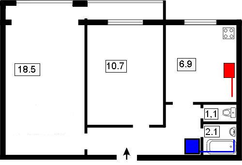 Красным- там где стоит сейчас. Синим- там где хочу чтоб стояла.