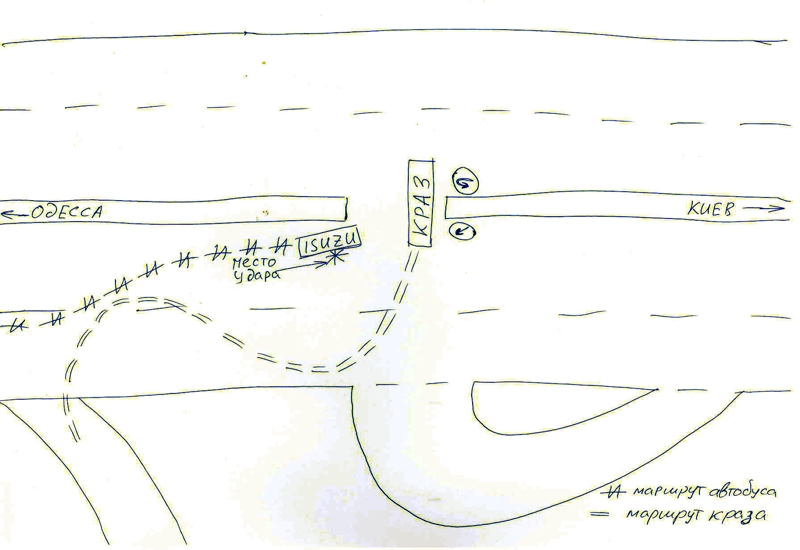 Ссылка За рулем автобуса был мой кум. Я выезжал на место ДТП. На вопрос к водятлу Краза "Почему не пропустил?" ответ был простой - "А я тебе не бачів". В трехстах метрах в сторону Киева разворот на Одессу, но этот мудилкин на Кразе решил сэкономить солярку. Сразу же посоветовал куму собирать все чеки за лечение и после суда выставлять иск к оппоненту.