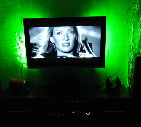 2 шт. люминесцентные лампы по бокам. Есть еще цвет синий - нам по дизайну не подходил Длинна разная есть - нужно смотреть на размер телека. Изначально купил 3 шт - еще сверху ставил - но оказалось много света - достаточно 2 шт. Свет должен быть мягким и не ярким. Вот примерно такой свет в темноте.