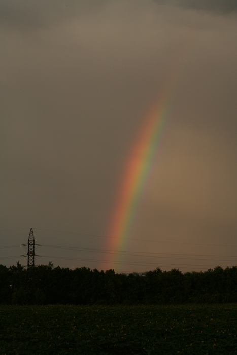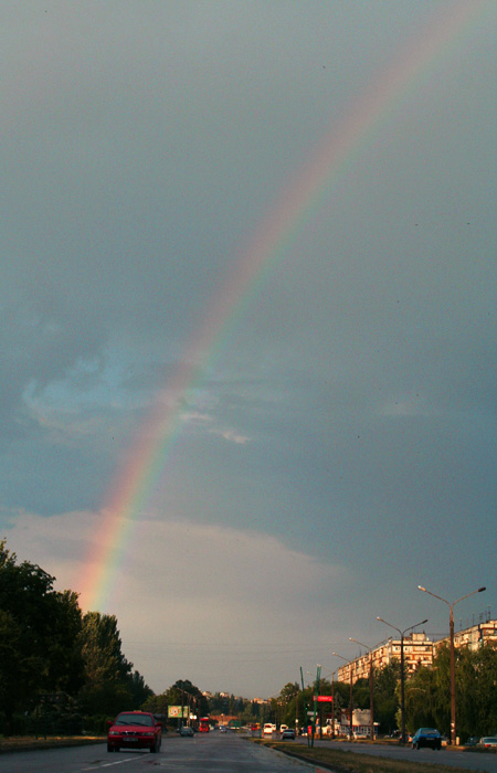 Объективом получше и поляризационным фильтром. Он позволит притемнить немного небо и выделить радугу. Потом фотошоп для дошлифовки. И стараться избегать столбов в кадре