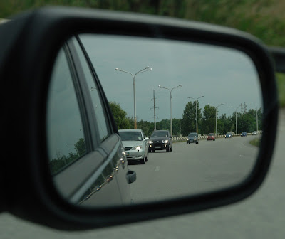 Очень скоро нашим верным спутников в пути стал закат, который отражался в зеркале заднего вида нашего автомобиля