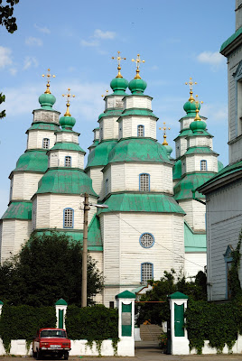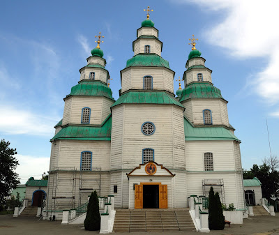 Свято-Троицкий собор - единственный в Украине девятибанный (девятикупольный) деревянный храм. Построен в 1775-80 гг. по приказу последнего кошевого атамана Запорожской Сечи П. Калнышевского на средства Войска Запорожского. Сложную 9-срубную конструкцию сложил из 559 брёвен без единого гвоздя мастер-самоучка из Нижних Водолаг Харьковской губернии А. Погребняк.
