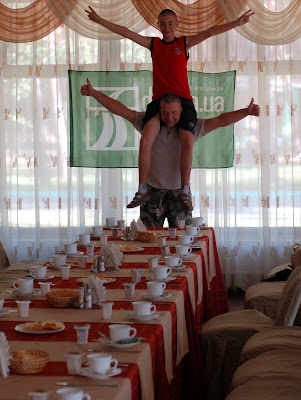С трудом разместив на парковке все автомобили колонны (14 авто, если не ошибаюсь) мы начали поселение.Номера нас не впечатлили. Но главный минус - соленая водопроводная вода.Но все минусы базы можно перекрыть двумя большими плюсами, во - первых: дружественная компания, во-вторых: небольшой сосновый лес. Вечернее застолье клуба Doroga.ua затянулось на несколько часов...