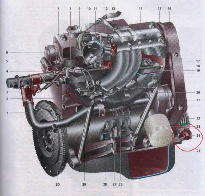 Немного правее от маслянного фильтра.