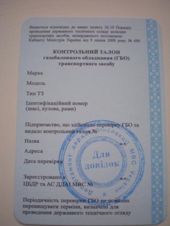 Вот так выглядит легальный талон ТО на ГБО. Приезжаешь, показываешь авто,если всё сделано по правилам, платишь 100 гр, получаешь талон