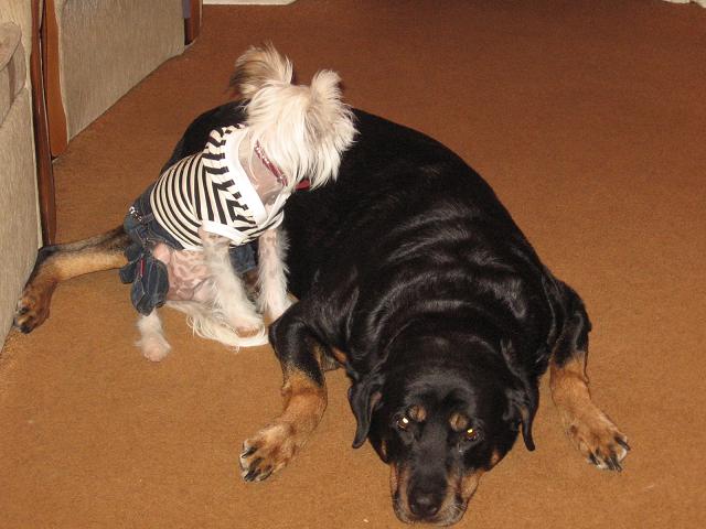 Мы когда-то отдыхали в Крыму, и у соседей по санаторию была такая собачка Тогда это было очень дорого и очень круто, хозяин собачки, по слухам, был таможенный генерал из Белоруссии. (Но приехал на ВАЗ-2110.) Собачка была интереснейшего поведения, очень деликатная, очень нежная. Море аккуратно трогала лапкой и отскакивала - холодно ей было... А лучше всего её характер выразил сын хозяина (лет пяти). На вопрос девочки такого же возраста, кусается ли их собачка, он ответил: "Нет. Только нюхается..."