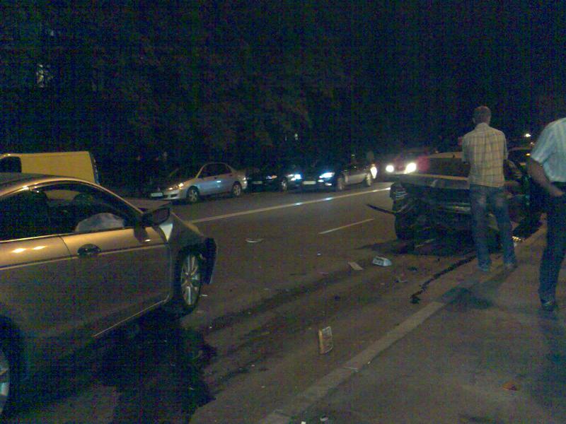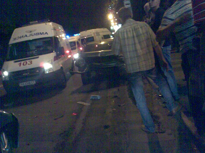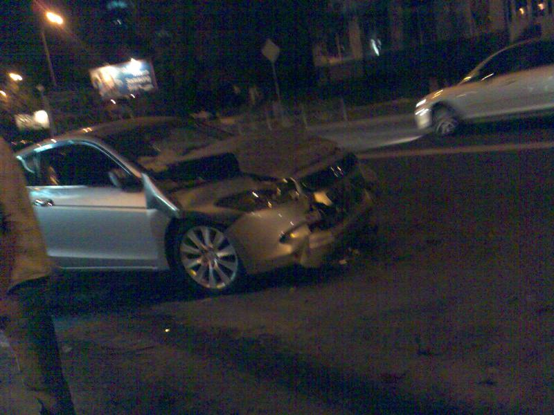В 22.30 молодой орел на хонде аккорд решил, что он великий гонсчег, и попытался красиво и с ветерком проехаться по Мечникова. Правда умения у него хватило только на то, чтобы доехать до пересечения с Первомайского, а потом умение закончилось, и он собрал гармошку из двух машин такси, которые стояли за поворотом, у метро Кловская. Парня из первого такси забрала скорая. У него травма позвоночника или шеи. Машина в хлам. У второй вмят багажник и повело кузов. Хонда на удивление крепкая, в минус только бампер, радиатор и капот. Гаишники приехали быстро, но оформлять не торопились, все ходили перетирали с мальцом из хонды. Видно сумму согласовывали. Потом увели в машину. Видно свидетелей стеснялись. Кстати, показания у свидетелей из гаишников никто взять не догадался. Все похоже на то, что отмажут мальчика по полной.