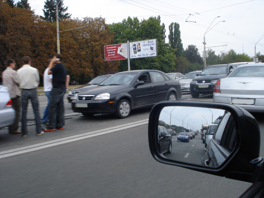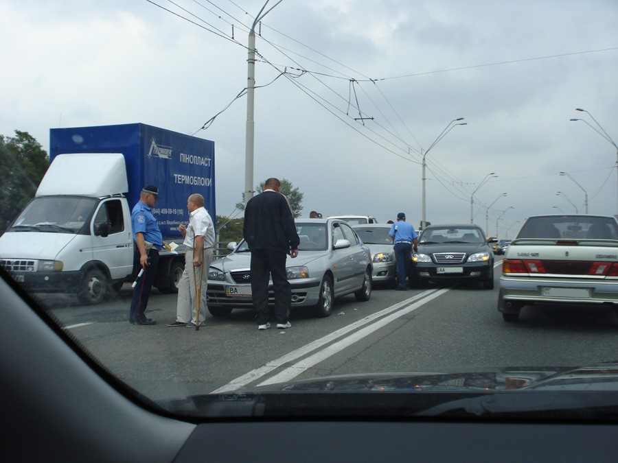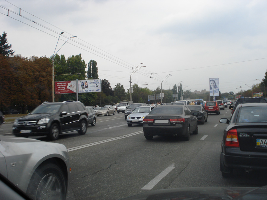 20 мин. (гаи не было) назад перед мостом Нивки, в сторону Святошино, поровоз - четыре машины.  Лансер первый, сузуки, сузуки жып и мерс...
