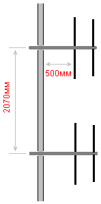 Вот решил создать темку о балконных вариантах антенн и креплений. Темка больше для начинающих таких , как я. Ну не дорос еще до полноценной мачты с фирменной повороткой-поэтому прошу сильно не "пинать". На фотке антеннка от Славы UT4UTB, единственное , что добавил симетрировал на ВЧ феритовом колечки от блока питания PC. КСВ на 144-1.2 , 145-1.07 146- 1.35. На 70 от 1.1 до 1.5 . На двойке слышна вся Киевская область . Кореспонденты слышали меня на 57-59 в Обухове,Ирпене без проблем.Крепление самодельное .Делал универсальным . Поскольку нет предела совершенству планирую стек 2 по 2 с выносом на 1.5 метра от стены дома как на рисунке ниже. В чем прелесть ,диаграмма почти круговая 4.7 dbd одной антенны , а четыре должны помочь и в контесте нормально выступать . Поскольку балкона два и рядышком планирую аналогичное крепление с другой стороны 7метров между ними. И думаю о КВ с тюнером. Правда пока не нашел решения конструктивно, что лучше натянуть. Кто как выходит из положения , давайте собирать варианты.