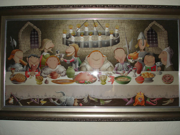 Автору же тему посоветую договорится с хозяином картины либо о нормальной съёмке (штатив, без вспышки) за небольшую денежку, либо за бОльшую денежку уговорить его засунуть это в сканер. Второе много лучше, т.к. любая фотка «сливает» скану, но если картина реально велика то со сканом могут быть проблемы…