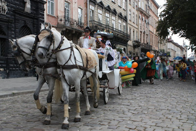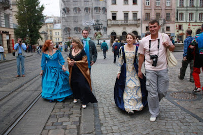 В процессе наслаждения Львовом и собой в нем, нас захлеснул необычный карнавал из местного театра – костюмированная колонна с музыкой, песнями и плясками будоражила город