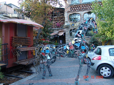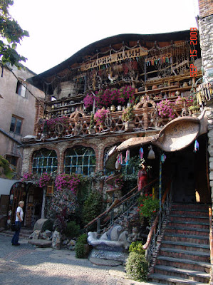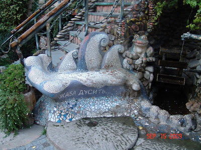 Мне всегда было интересно узнать о человеке, сотворившем сие чудо. Михаил Гросуляк - простой украинский мужик из села Выгода, Тернопольской обл. У него большая и дружная семья – трое детей (все вовлечены в семейный бизнес). Ранее занимался торговлей, после поездки в Испанию серьезно «заболел» Гауди. В начале 90-х он приобрел участок земли, на котором до прихода советской власти в 1939 году была мельница, и нынешний музей-ресторан является своеобразным памятником бывшим хозяевам. Здание построено исключительно из старых кирпичей. Команда, производившая строительные работы собралась неординарная, и это несомненно чувствуется в энергетике места. Тернопольчане, проникшись творческим задором создателей, приносили свои вещи. Как рассказывает в одном интервью Михаил Гросуляк: «один мужик на троллейбусе привез старинные кузнечные меха. Сельский дед пригласил к себе, открыл гараж, и я опешил, увидев действующую полковую мельницу, которую немцы бросили при отступлении. Теперь у нас каждый может смолоть муку и получить сувенирный мешочек на память». Глядя на все это творческое безумие, на супер современную (официант принимает заказ на КПК) и очень качественную систему обслуживания не говоря уже о страшно вкусной и опасной для фигуры еде я понимаю, что в нашей стране еще не все потерянно. За эту удивительную поездку мы узнали, что таких людей в Украине много, значит, будем жить и жить будем хорошо! Окончательный занавес Поклон за внимание
