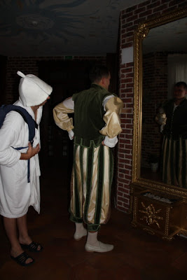 Пока мужская половина нашей компании занималась расселением и разгрузкой багажников, женщины побежали выбирать средневековые платья. Это же мечта каждой девушки – забыть на время о джинсах, 21-ом веке, и погрузиться во времена длинных женственных платьев, рюшиков и бантов. Когда мы одели костюмы – мир перевернулся.
