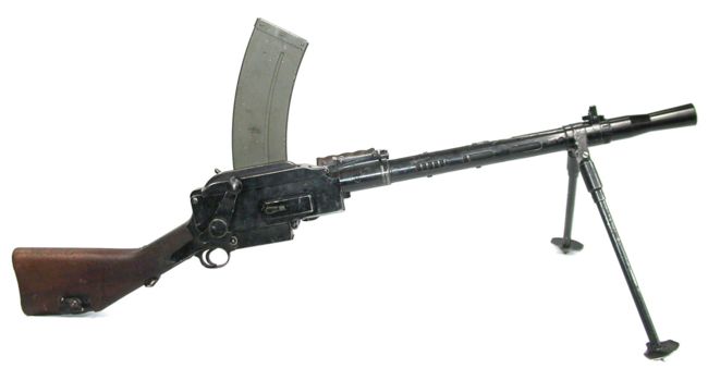 Смесь пулемётов BAR и BRAIN. Может самоделка какая-то? Просто удобная, с большим магазином. Вот янки ППШ любят использовать трофейные при зачистке зданий в Ираке. У этого автомата ии пулемёта на фото вроде бы ещё глушитель интегрированный на всесь ствол, как в ВСС "Винторез".