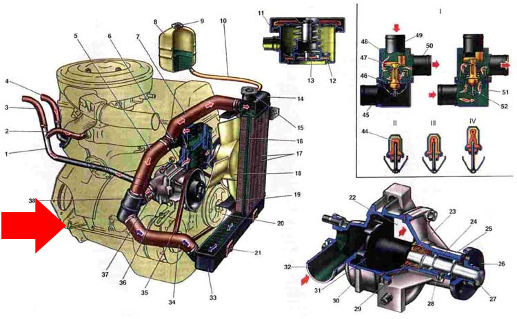 ВАЗ 2106. потек тосол. стекает где-то из-за стартера на кронштейн в точке, указанной на рисунке. Установить самостоятельно место утечки не удалось. за но натекло нормально, но утром уже не капало. Снова начало капать после того, как снял оба патрубка к печке. но ни из патрубков, ни из штуцеров, с которых их снял, не потекло. После запуска двигателя начало капать сильно интенсивнее - почти течь. но установить место течи также не удалось. Отсюда вопрос: куда на Оболони обратиться для установления причин утечки тосола и их устранения? Также интересны версии камрадов по поводу возможного места утечки.