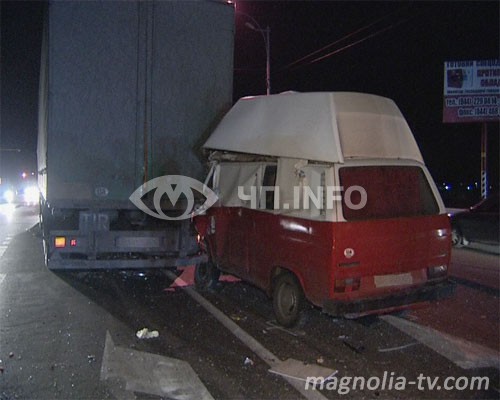 Около пяти часов вечера 14 ноября на Минском проспетке микроавтобус "Фольксваген" протаранил грузовик. Водитель микроавтобуса погиб на месте, его пассажира увезла скорая помощь. Водитель фуры в момент нашей съемки находился в состоянии сильного шока. Мужчина говорит, что перестроился в левую полосу и притормозил, чтобы повернуть на Вышгород, пропуская встречный транспорт. В этот момент в него врезался "Фольксваген".