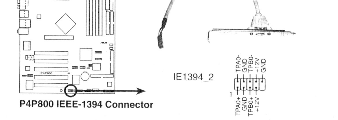 Имеем корпус чифтек с выведенными на переднюю панель слотами USB и IEEE 1394. Материнская плата ASUS P4P800 Deluxe. Как подключить USB вроде бы понятно, а вот с 1394 проблемы. На проводах от корпуса имеем обозначения: VP, VG, TPA-, TPA+, TPB-, TP+. На матери имеем (на рис.) Так вот, понятно что ТР это данные, но что такое на проводах от копруса VP, VG? Это +12 или еще что? А где земля?