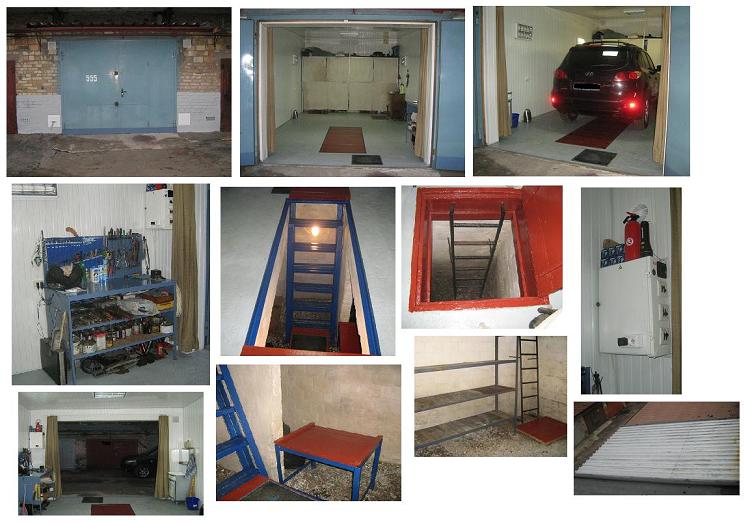 По периметру всего гаража: - Смотровая яма с вентиляцией 1) 2,40 х 0,75, 2) 3,0 х 2,40, высота потолка 1,70 м. - Кирпичные стены, бетонные перекрытия. - Подвал для хранения пищевых запасов с вентиляцией, размер: 0,90х0,70, 2,90х3,20, высота 1,70 м.