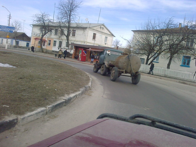 Во время поездки в Хмельницкий по дороге попался вот такой трактор. К сожалению, не было возможности сфотографировать подробнее. Кабина от грузовика ГАЗ, похоже. Только она представляет собой практически весь корпус - трактор маленький. Больше технических подробностей не удалось разглядеть. Ехал довольно резво, как для трактора с прицепом. Что интересно, с номерами.