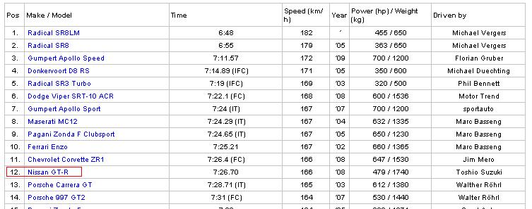 Что касается нового ГТР, то он неплох, особенно за свои деньги. Но тем не менее первым он никогда не был и вряд ли будет. http://www.fastestlaps.com/track2.html