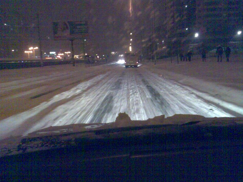 А у нас уже Только что вернулись с Киева, полосность сузилась, к домам и второстипенные дорожки уже проблематичны в передвижении. Народ на остановках истерично бросаеться на остановившиеся машины, поскольку маршрутки уже гребуься. Сами также переживали, поскольку ехеть за Киев, а маршруток меньше. На ночь поднимаеться ветер/метель.